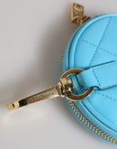 Dolce & Gabbana Azure Blue Leather Round Coin Purse Keychain Crystal Logo Wallet