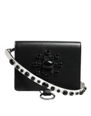 Dolce & Gabbana Black Leather Crystal Embellished Card Holder Wallet