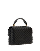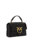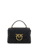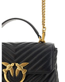 Calfskin Love Lady Mini Handbag by Pinko, front magnetic flap closure, iconic gold-plated Love Birds logo embossed on the front, quilted and padded design, double interior compartment, removable chain shoulder strap with smooth leather insert, flat rigid top handle, interior flat pocket with zipper, iconic tone-on-tone embroidered brand monogram on the back.