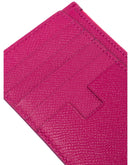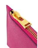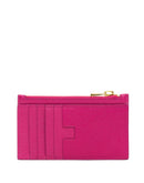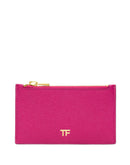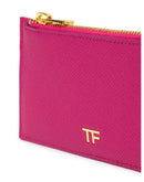 Tom Ford card holder in fuchsia leather. Accessory with golden zip closure, metal “TF” logo applied on the front and card slots.
