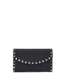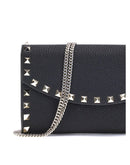 Valentino Garavani grained leather Wallet with removable chain shoulder strap for dual modes of use. Features front closure with magnetic flap and iconic Rockstud studs applied on the perimeter for a bold and elegant design. Inside, a single compartment with card slots to better organize your essentials.