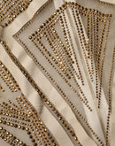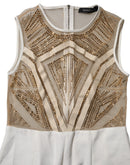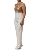 Mangano White Beige Mesh Crystal Embellished Sleeveless Jumpsuit