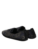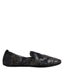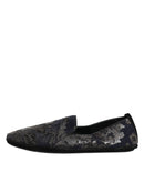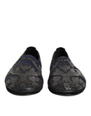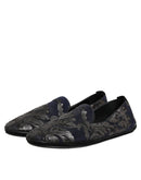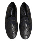 Dolce & Gabbana Black Jacquard Leather Slip On Loafers Shoes
