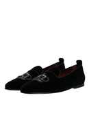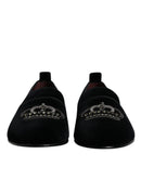 Dolce & Gabbana Black Velvet Crystal Crown Loafers Formal Dress Shoes