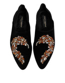 Dolce & Gabbana Black Velvet Embellished Loafer Slip On Shoes