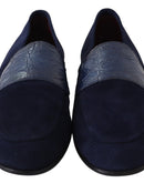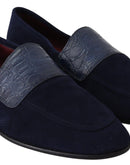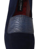 Dolce & Gabbana Blue Suede Caiman Loafers Slippers Shoes