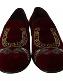 Dolce & Gabbana Bordeaux Velvet Loafers Gun Horseshoe Shoes