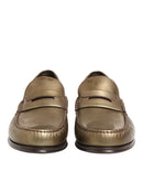 Dolce & Gabbana Gold Leather Slip On Dress Men Loafers Shoes