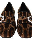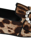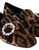 Dolce & Gabbana Brown Leopard Print Crystals Loafers Flats Shoes