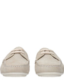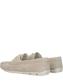 The product with MPN 1DD078054005F0D32 and code F81028 suede in gray is a loafers designed by Prada. It has features like side logo.