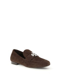 The Eleanor Loafers by Tory Burch are crafted from soft suede and feature the signature double T silver-tone hardware, an iconic brand detail. Elegant and refined, they combine classic style and comfort, making them perfect for both casual looks and more polished outfits. Their clean silhouette and meticulous finishing make them a versatile, chic accessory for everyday wear.