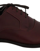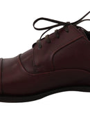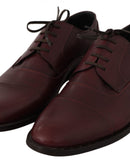 Dolce & Gabbana Red Bordeaux Leather Derby Formal Shoes