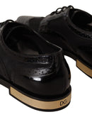 Dolce & Gabbana Black Leather Broques Sheer Wingtip Shoes