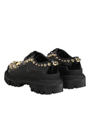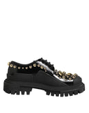 Dolce & Gabbana Black Leather Jeweled Crystals Derby Shoes
