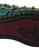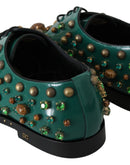Dolce & Gabbana Green Leather Crystal Dress Broque Shoes
