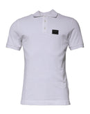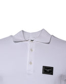 Dolce & Gabbana White Cotton Logo Plaque Collared Polo T-shirt