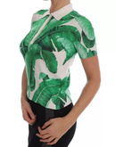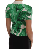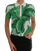 Dolce & Gabbana Green Banana Print Silk Polo T-shirt