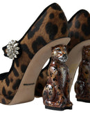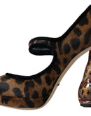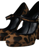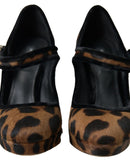 Dolce & Gabbana Black Brown Calf Leopard Heel Mary Jane Pump Shoes
