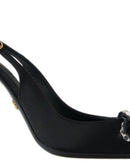 Dolce & Gabbana Black Crystal Embellished Slingback Heel Shoes