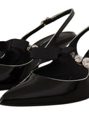 Dolce & Gabbana Black Patent Leather Crystal Slingbacks Shoes