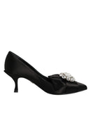 Dolce & Gabbana Black Satin Bow Crystal Embellishment Pumps Shoes