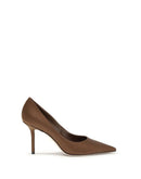 Love Pumps by Jimmy Choo stand out for their sleek almond toe and slender stiletto heel. Made of refined silk, they offer a sophisticated design complemented by the discreet logo on the inside, perfect for a chic and timeless look.