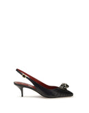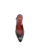 The Panthea pumps by Valentino Garavani are crafted from soft kidskin leather with refined pleated detailing. The design is embellished with an enameled feline head adorned with Swarovski® crystals and a VLogo Signature detail in antique-effect brass, offering bold and sophisticated elegance.