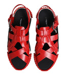 Dolce & Gabbana Red Black Leather Ankle Strap Sandals Shoes
