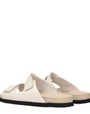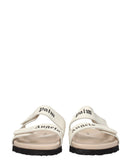 The product with MPN PMIH004LEA0010361 and code F76117 leather in beige is a slippers and clogs designed by Palm Angels. It has features like front logo.