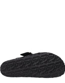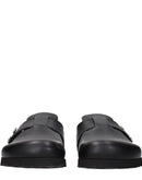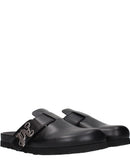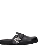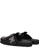 The product with MPN PMIJ00ALEA0011000 and code F84534 leather in black is a slippers and clogs designed by Palm Angels. It has features like side logo.