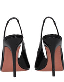 Amina Muaddi Black Leather Stiletto Heel Sandals