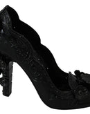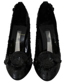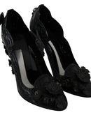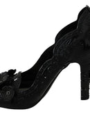 Dolce & Gabbana Black Floral Crystal CINDERELLA Heels Shoes