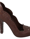 Dolce & Gabbana Brown Floral Crystal Heels CINDERELLA Shoes