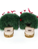 Infuse your footwear collection with a touch of opulence courtesy of Mr&Mrs Italy’s striking sandal slippers. Expertly crafted in Italy, these luxurious slides boast a lavish band of real fur and feathers, ensuring each step you take resonates with chic sophistication. Set on a robust rubber sole featuring a contrasting pattern and border, they elevate the classic silhouette to a statement of bold fashion. Perfect for those who dare to stand out with trendy finesse.