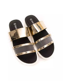 Step out in radiant style with Péché Originel’s latest sandal creation, where timeless glamour meets modern finesse. The low 3.5 cm heel provides a comfortable stride, while the twin polyethylene straps dazzle with intricate rhinestones, ensuring your feet command attention at any soirée. Strut with confidence, as each detail reflects the brand’s commitment to luxury and quality craftsmanship. These gold-toned beauties are not just sandals, they’re jewels for your feet. Elevate your wardrobe with this must-have staple from Péché Originel.