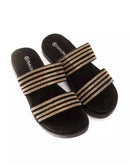 Elevate your ensemble with Péché Originel’s dazzling low sandals. Adorned with two striking straps and a glittering rhinestone finish, these sandals feature a modest 3 cm heel—perfect for adding a touch of elegance without forgoing comfort. Exquisitely crafted from a symphony of textile and synthetic materials with an eye-catching gold hue, these sandals are a testament to sophisticated design and trendsetting appeal.