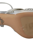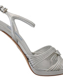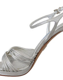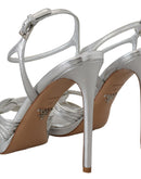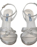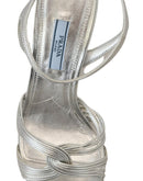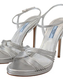Prada Silver Leather Sandals Ankle Strap Heels Stiletto