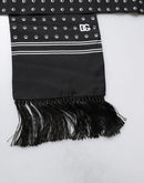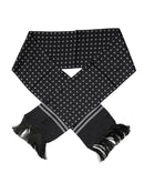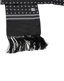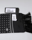 Dolce & Gabbana Black White Polka Dotted Silk Skinny Fringes Scarf