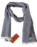 Missoni Gray Striped Wool Unisex Neck Wrap Fringes Scarf