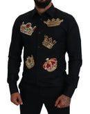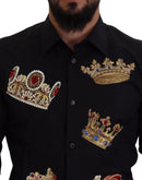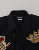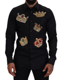 Dolce & Gabbana Black Gold Crown Slim Fit Dress Formal Shirt