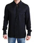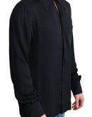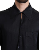 Dolce & Gabbana Black Jacquard Silk Casual Button Down Shirt