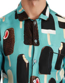 Dolce & Gabbana Blue Silk Ice Cream Print Casual Shirt