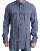 Dolce & Gabbana Blue Stripes Men Casual Button Down Shirt