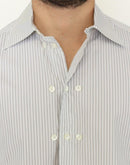 Ermanno Scervino White Gray Striped Regular Fit Casual Shirt