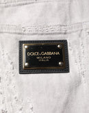 Dolce & Gabbana Light Gray Tattered Men Denim Bermuda Shorts