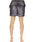 Elevate your beachwear game with these striking Just Cavalli beach shorts emblazoned with a bold print that showcases your fashion-forward aesthetic. Designed for the trendsetter, the elasticized waistband ensures a perfect fit while the drawstring adds a casual yet functional touch. Side pockets offer convenience, letting you carry your essentials as you stride with confidence along the shore. Crafted from durable polyester, they promise to keep up with your dynamic lifestyle.