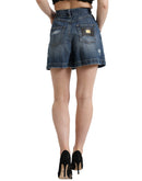 Dolce & Gabbana Blue Cotton High Waist Denim Hot Pants Shorts