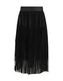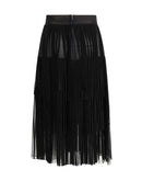 The Organza Skirt by Dolce & Gabbana features a gathered waist that enhances its volume and lightness. Applied fringes add dynamism and movement, transforming an essential piece into a statement of contemporary style. Made from a lightweight yet structured fabric, it reflects a harmonious balance between delicacy and expressive strength, perfectly aligned with the Maison’s feminine aesthetic.