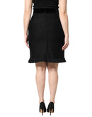Dolce & Gabbana Black Wool Fringe High Waist Pencil Mini Skirt