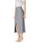 The ICHI IHSARLA SK 20121418 women’s midi skirt is an elegant and versatile garment, perfect for creating sophisticated looks both in the office and for special occasions. Made from a high-quality blend of polyester (80%), viscose (16%), and elastane/lycra (4%), this skirt ensures a comfortable and slightly stretchy fit that flatters the silhouette. The design features a straight, clean cut with a front slit, adding a modern and feminine touch. Details such as belt loops at the waist, a concealed zip closure, and a below-the-knee length make it ideal for those seeking a timeless and refined style. Pair it with a blouse or fitted top for a flawless outfit.